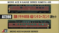 [A7280]国鉄クモヤ495系 4基パンタ ローズピンク 2両セット
